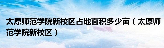 关于太原师范学院新校区占地面积多少亩,太原师范学院新校区这个很多人还不知道,今天菲菲来为大家解答以上的问题,现在让我们一起来看看吧!