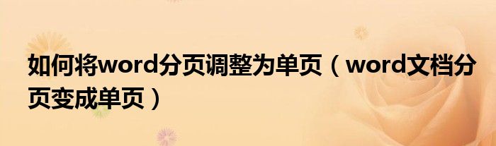 关于如何将word分页调整为单页,word文档分页变成单页这个很多人还不知道,今天菲菲来为大家解答以上的问题,现在让我们一起来看看吧!