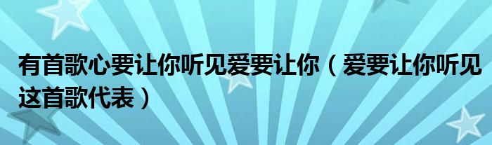 关于有首歌心要让你听见爱要让你,爱要让你听见这首歌代表这个很多人还不知道,今天菲菲来为大家解答以上的问题,现在让我们一起来看看吧!