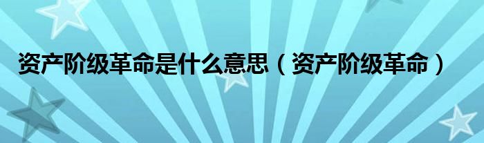 关于资产阶级革命是什么意思,资产阶级革命这个很多人还不知道,今天菲菲来为大家解答以上的问题,现在让我们一起来看看吧!