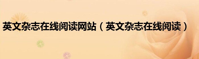 关于英文杂志在线阅读网站,英文杂志在线阅读这个很多人还不知道,今天菲菲来为大家解答以上的问题,现在让我们一起来看看吧!