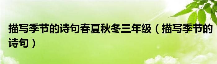 关于描写季节的诗句春夏秋冬三年级,描写季节的诗句这个很多人还不知道,今天菲菲来为大家解答以上的问题,现在让我们一起来看看吧!