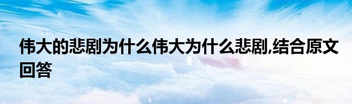 关于伟大的悲剧为什么伟大为什么悲剧,结合原文回答这个很多人还不知道,今天菲菲来为大家解答以上的问题,现在让我们一起来看看吧!