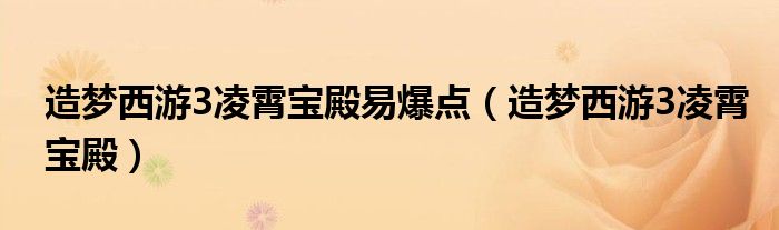关于造梦西游3凌霄宝殿易爆点,造梦西游3凌霄宝殿这个很多人还不知道,今天菲菲来为大家解答以上的问题,现在让我们一起来看看吧!