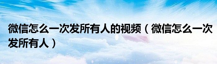 大家好,小晋来为大家解答以下问题,关于微信怎么一次发所有人的视频,微信怎么一次发所有人很多人还不知道,今天让我们一起来看看吧!
