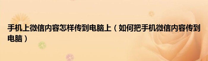 关于手机上微信内容怎样传到电脑上,如何把手机微信内容传到电脑这个很多人还不知道,今天菲菲来为大家解答以上的问题,现在让我们一起来看看吧!