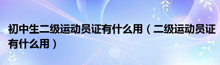 大家好,小晋来为大家解答以下问题,关于初中生二级运动员证有什么用,二级运动员证有什么用很多人还不知道,今天让我们一起来看看吧!