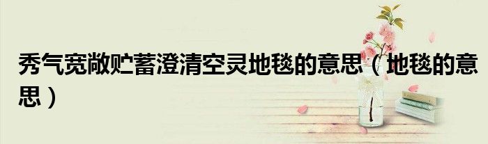 关于秀气宽敞贮蓄澄清空灵地毯的意思,地毯的意思这个很多人还不知道,今天菲菲来为大家解答以上的问题,现在让我们一起来看看吧!