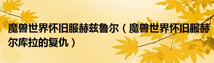 关于魔兽世界怀旧服赫兹鲁尔,魔兽世界怀旧服赫尔库拉的复仇这个很多人还不知道,今天菲菲来为大家解答以上的问题,现在让我们一起来看看吧!