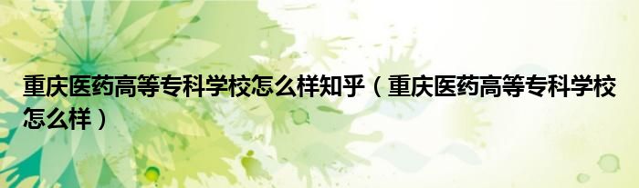 关于重庆医药高等专科学校怎么样知乎,重庆医药高等专科学校怎么样这个很多人还不知道,今天菲菲来为大家解答以上的问题,现在让我们一起来看看吧!