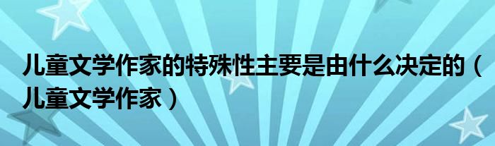 关于儿童文学作家的特殊性主要是由什么决定的,儿童文学作家这个很多人还不知道,今天菲菲来为大家解答以上的问题,现在让我们一起来看看吧!