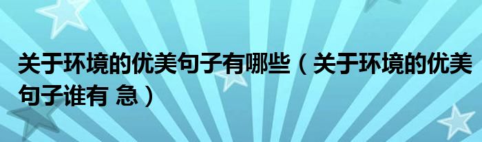 关于关于环境的优美句子有哪些,关于环境的优美句子谁有 急这个很多人还不知道,今天菲菲来为大家解答以上的问题,现在让我们一起来看看吧!
