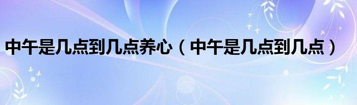 关于中午是几点到几点养心,中午是几点到几点这个很多人还不知道,今天菲菲来为大家解答以上的问题,现在让我们一起来看看吧!