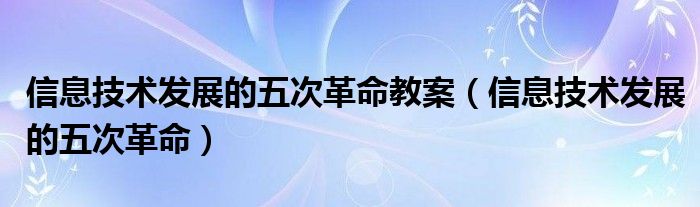 关于信息技术发展的五次革命教案,信息技术发展的五次革命这个很多人还不知道,今天菲菲来为大家解答以上的问题,现在让我们一起来看看吧!