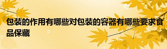 关于包装的作用有哪些对包装的容器有哪些要求食品保藏这个很多人还不知道,今天菲菲来为大家解答以上的问题,现在让我们一起来看看吧!