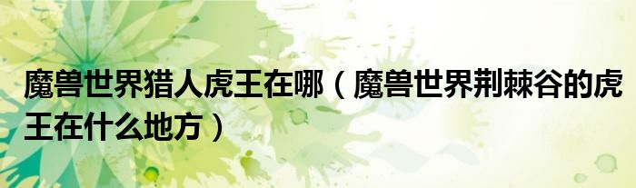 关于魔兽世界猎人虎王在哪,魔兽世界荆棘谷的虎王在什么地方这个很多人还不知道,今天菲菲来为大家解答以上的问题,现在让我们一起来看看吧!