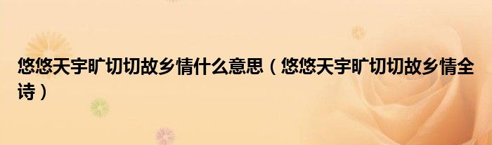 关于悠悠天宇旷切切故乡情什么意思,悠悠天宇旷切切故乡情全诗这个很多人还不知道,今天菲菲来为大家解答以上的问题,现在让我们一起来看看吧!