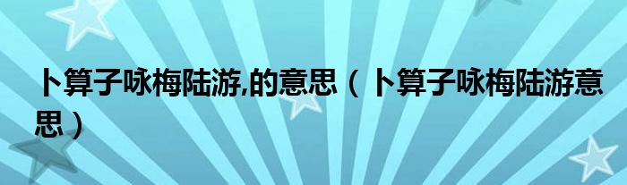 关于卜算子咏梅陆游,的意思,卜算子咏梅陆游意思这个很多人还不知道,今天菲菲来为大家解答以上的问题,现在让我们一起来看看吧!
