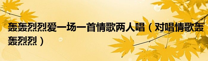 关于轰轰烈烈爱一场一首情歌两人唱,对唱情歌轰轰烈烈这个很多人还不知道,今天菲菲来为大家解答以上的问题,现在让我们一起来看看吧!