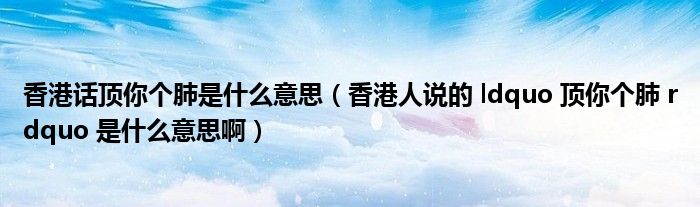 关于香港话顶你个肺是什么意思,香港人说的 ldquo 顶你个肺 rdquo 是什么意思啊这个很多人还不知道,今天菲菲来为大家解答以上的问题,现在让我们一起来看看吧!