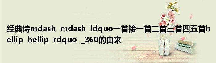 关于经典诗mdash mdash ldquo一首接一首二首三首四五首hellip hellip rdquo _360的由来这个很多人还不知道,今天菲菲来为大家解答以上的问题,现在让我们一起来看看吧!