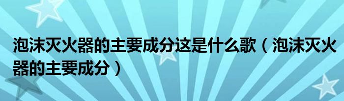 关于泡沫灭火器的主要成分这是什么歌,泡沫灭火器的主要成分这个很多人还不知道,今天菲菲来为大家解答以上的问题,现在让我们一起来看看吧!