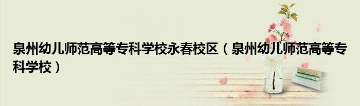 关于泉州幼儿师范高等专科学校永春校区,泉州幼儿师范高等专科学校这个很多人还不知道,今天菲菲来为大家解答以上的问题,现在让我们一起来看看吧!