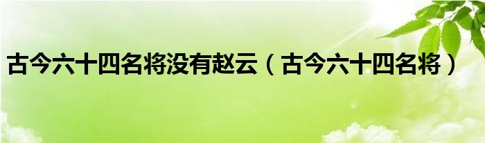 关于古今六十四名将没有赵云,古今六十四名将这个很多人还不知道,今天菲菲来为大家解答以上的问题,现在让我们一起来看看吧!