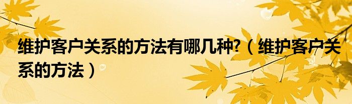 关于维护客户关系的方法有哪几种?,维护客户关系的方法这个很多人还不知道,今天菲菲来为大家解答以上的问题,现在让我们一起来看看吧!