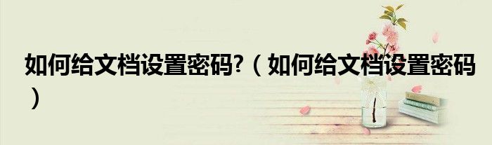 关于如何给文档设置密码?,如何给文档设置密码这个很多人还不知道,今天菲菲来为大家解答以上的问题,现在让我们一起来看看吧!
