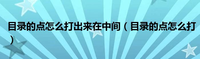 大家好,来宝来为大家解答以下问题,目录的点怎么打出来在中间,目录的点怎么打很多人还不知道,今天让我们一起来看看吧!