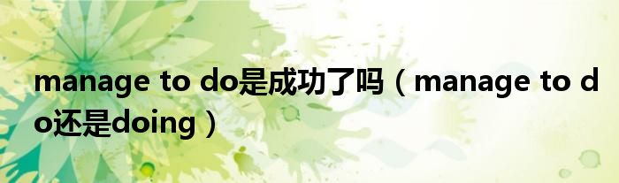 关于manage to do是成功了吗,manage to do还是doing这个很多人还不知道,今天菲菲来为大家解答以上的问题,现在让我们一起来看看吧!