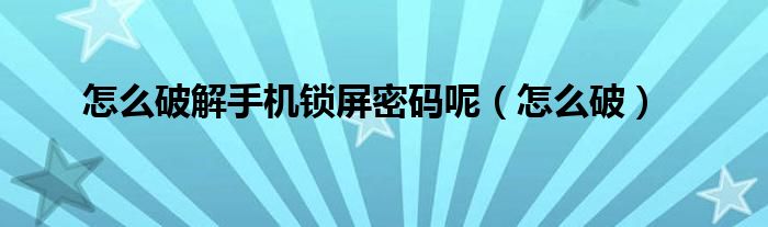 怎么破解手机锁屏密码呢(怎么破)