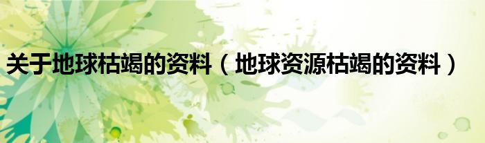 关于关于地球枯竭的资料,地球资源枯竭的资料这个很多人还不知道,今天菲菲来为大家解答以上的问题,现在让我们一起来看看吧!