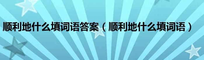 大家好,小晋来为大家解答以下问题,关于顺利地什么填词语答案,顺利地什么填词语很多人还不知道,今天让我们一起来看看吧!