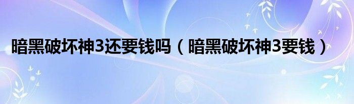 关于暗黑破坏神3还要钱吗,暗黑破坏神3要钱这个很多人还不知道,今天菲菲来为大家解答以上的问题,现在让我们一起来看看吧!