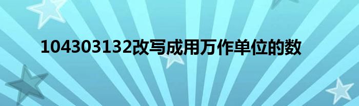 关于104303132改写成用万作单位的数这个很多人还不知道,今天菲菲来为大家解答以上的问题,现在让我们一起来看看吧!