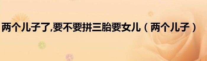 关于两个儿子了,要不要拼三胎要女儿,两个儿子这个很多人还不知道,今天菲菲来为大家解答以上的问题,现在让我们一起来看看吧!