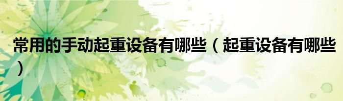 关于常用的手动起重设备有哪些,起重设备有哪些这个很多人还不知道,今天菲菲来为大家解答以上的问题,现在让我们一起来看看吧!