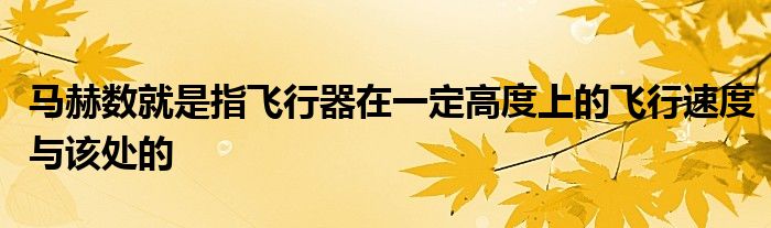 马赫数就是指飞行器在一定高度上的飞行速度与该处的