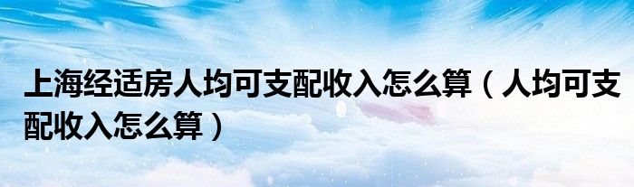关于上海经适房人均可支配收入怎么算,人均可支配收入怎么算这个很多人还不知道,今天菲菲来为大家解答以上的问题,现在让我们一起来看看吧!