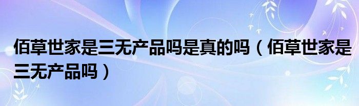 大家好,小晋来为大家解答以下问题,关于佰草世家是三无产品吗是真的吗,佰草世家是三无产品吗很多人还不知道,今天让我们一起来看看吧!