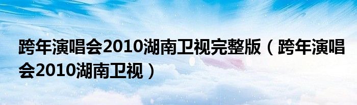 跨年演唱会2010湖南卫视完整版,跨年演唱会2010湖南卫视很多人还不知道,乐乐来为大家解答以上问题,现在让我们一起来看看吧!