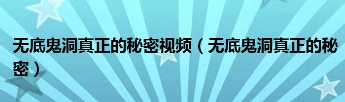 大家好,小晋来为大家解答以下问题,关于无底鬼洞真正的秘密视频,无底鬼洞真正的秘密很多人还不知道,今天让我们一起来看看吧!